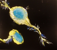 Punto di fuga – "Il desiderio di dipingere è nato solo nel 2005 – racconta Massimo D'Andolfi – nonostante fossi cresciuto con un padre pittore. Il fascino per l'arte l'ho sempre avuto, ma decisivo è stato l'incontro con Giovanni Testori e con Mario De Micheli, mio professore. In particolare Testori mi ha fatto conoscere gli artisti tedeschi, Bacon, e altri mondi artistici, che mi hanno incuriosito tanto da intraprendere la strada del dipingere. Inizialmente descrivevo sulla tela soggetti della memoria, ritratti; col tempo la mia attenzione si è spostata su una ricerca specifica, la cellula". In mostra l'artista presenta alcune opere, datate 2006/2008, di questa sperimentazione che si addentra nell'invisibile e lo estrapola. "Io lo definisco 'bioespressionismo', uno studio, un atteggiamento totalmente legato alla realtà, all'uomo, ma non visibile, è qualcosa che sta dentro. Così tramite la pittura lo rendo visibile a tutti".