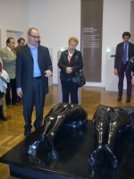 Parti del tutto – Una mostra che accoglie diverse forme d'arte, dalle linee di un disegno alla pesantezza del marmo, dalla vivacità della pittura alla lucentezza del bronzo. Corpi e forme che si rincorrono. Un unico pensiero, la vita fino all'estremo, la morte; la vera forza motrice, l'amore. Sfilano nelle sale del Palazzo Leone da Perego, le opere che raccontano la visione dell'esistenza da parte del maestro francese, a cui non è facile ricondurre lo sguardo attento dei grandi del '900 come Bodini, Perez, Vangi. Basta soffermare lo sguardo sulla maestosa opera, di così difficile e pensata materializzazione da parte dell'artista, posta all'ingresso della mostra: 'Scène comique de la vie moderne', 1976. Il risultato, l'esplosione di un dolore, forte, lacerante, quel telefono, rosso, concreto. Un dettaglio, un elemento che sottolinea una ferita vera, reale, un solco che non si può colmare, ma che non si può neanche raccontare, descrivere far vivere. Grandi mani sottili, essenziali, scheletriche, che sembrano avvicinarsi a quelle dell'ucciso di Bodini, o alle altre numerose sue figure di qualche anno precedente all'opera del francese. Ma sembrano parlare la stessa lingua, le stesse vibrazioni, lo stesso vuoto.