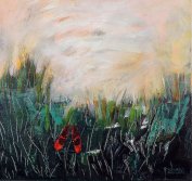 Veronica Garcia, Le zapatillas rojas, 2012scenari onirici e misteriosi, come in Cumpleanos (2012) dove la silhouette di una bambina vaga spaesata in una sorta di città fantasma, o in Le zapatillas rojas (2012) dove delle aggraziate scarpette rosse giacciono a terra avvolte da lunghi fili d'erba. A queste visioni trasognate si aggiungono le tante barche che veleggiano verso mete lontane, incarnando il continuo fluire dell'esistenza e quella rassicurante alcova materna che con la sua forma concava avvolge e protegge dalle avversità. Immagini personali ma anche archetipi universali di quello che Carl Gustav Jung ha chiamato "inconscio collettivo", un grande contenitore psichico in cui confluiscono tutte le esperienze del genere umano e attraverso cui è possibile accedere a livelli più profondi di conoscenza e consapevolezza. È questo, infatti, il fine ultimo della camaleontica ricerca di Veronica Garcia.