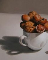Al mercato – "Mai scelti a caso, i protagonisti che mette sui suoi palcoscenici sono ricercati con pazienza nei mercati: "Spesso quelli con più personalità sono proprio i frutti con ammaccature o dalla forma irregolare", racconta l'autore. Nel silenzio del suo studio apparecchia il tavolo con la scena da dipingere. E' il momento più delicato. Dispone i frutti sotto il fascio di luce della lampada, li accosta, li allontana, li avvicina di nuovo per creare il modello delle sue studiatissime architetture. Dove tutto è necessario e nulla è casuale. Si muove silenzioso, quasi inavvertito, alla ricerca del punto di vista ideale per ritrarre la scena che ha in mente. Dà l'ultimo tocco, poi sistema il cavalletto e scatta. La foto fornisce una traccia che l'artista seguirà fedelmente. Ogni