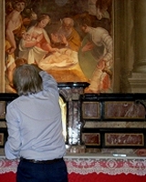 Vittorio Sgarbi davanti all'affrescoCarla Tavernari, figlia del noto artista Vittorio, ha segnalato alla redazione un precedente molto interessante sull'attribuzione dell'affresco di Madonna in campagna a Castiglione Olona – argomento di cui ci siamo occupati la scorsa settimana – alla mano del Morazzone.