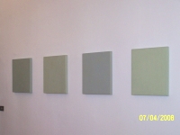 Lavori dell'artistadelicata di colore tra una sequenza di opere ‘gemelle'; si percepisce a poco a poco e lentamente la profondità di un blu o di un verde cupo, che a prima vista sembrano semplicemente uguali.