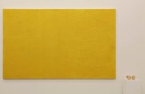 Infine accanto a un monocromo realizzato, su tela, con polenta, due uova d'oro recano la didascalia eseguita con chiodi d'argento e diamanti "bramata oro".