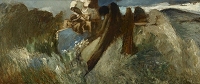 G. Fattori, La diligenza a SestoIl divisionismo – Una quarantina le opere che compongono la mostra. Si parte con un bozzetto per la grande Maternità di Gaetano Previati che apre il percorso alla Züst di Rancate, un'opera di pregio esposta per la prima volta. Accanto l'opera finita, un'enorme tela in cui si coglie tutta la modernità di questo nuovo stile. Il divisionismo con tutto il suo fascino fatto di linee, filamenti di colori che si accavallano creando la magia della scena. Un miscuglio senza forma se visto da vicino, ma allontanandosi si vedono emergere le figure, la madre e il figlio abbracciati in una tenera immagine famigliare. L'intera sala del piano terra è dedicata a Gaetano Previati, del maestro ferrarese si trova anche un'insolita figura di Cristo crocifisso. Il tema sacro, ricorrente nell'attività del pittore è qui affrontato con sconcertante naturalezza, la sofferenza del figlio di Dio è tangibile, umana.