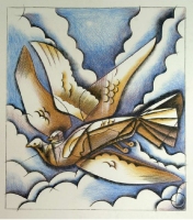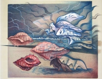 'Colomba', 2004, litografia a coloriIn che modo Floriano Bodini si avvicina al mondo della grafica?