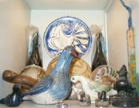 "L'interesse per questa immagine è confermato dalla sua collezione di oggetti che ritraggono colombe o di cui richiamano la forma. Costituita da oggetti di varie