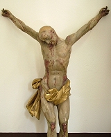 Il Cristo senza capelliIl Crocifisso – Il Cristo in croce riversava in pessime condizioni. L'intervento a cui è stato sottoposto è stato per forza di cose diverso: "Siamo subito intervenute con una lunga e paziente opera di fissaggio del colore originale, per poi concludere sempre con stucchi e ritocchi", raccontano. In questo caso le sorprese non sono mancate a lavori ultimati: la scoperta più importante è relativa al perizoma del Cristo. I fedeli lo ricordano dorato: "Tuttavia durante la pulitura – racconta ancora Daniela – abbiamo identificato i colori originari del panno, bianco a righe verdi. Materiali poveri, sicuramente per enfatizzarne il realismo. Quello che ci ha colpito in questa statua infatti è la grande espressività, che si evince dal volto del Cristo e dall'utilizzo di una parrucca per i capelli".