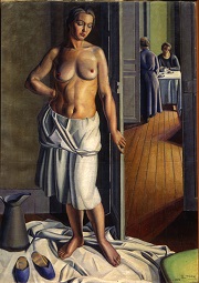 Tra le opere esposte da osservare con attenzione "Ritratto della madre" 1915, olio su tela, e "La toeletta del Mattino". Nel primo emerge la figura della donna, tra forza e levità, in una costruzione geometrica del dipinto che ne esalta un equilibrio formale di grande efficacia. Il secondo, una delle sue opere più famose, è quasi un manifesto della sua pittura degli anni Venti che coglie la lezione di Picasso e del Ritorno all'ordine, con il compito di uscire dall'impressionismo e ridare imponenza alla figura umana. La donna che ha appena fatto il bagno è immobile come una statua, occupa la scena nella sua vitale corporeità, conscia, forse, di non sapere ancora quale sia realmente il suo ruolo.