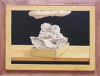 Sciancalepore, 'Ur,la città del Diluvio', 2003Paolo Sciancalepore – Originario di Molfetta, dove nasce nel 1955, Sciancalepore incuriosisce l'occhio dello spettatore con le sue mitiche rappresentazioni. Un'arte pittorica che ha dell'illusionistico, che cattura e obbliga ad una visione attenta. Tavole che risentono della passione di Sciancalepore per la scenografia e l'illustrazione. Ma anche e soprattutto per quell'arte del passato che nelle sue opere in modi diversi riaffiora. Principi del realismo, dell'iperrealismo, surrealismo e metafisica riproposti e rivisti attraverso la fantasia dell'artista.