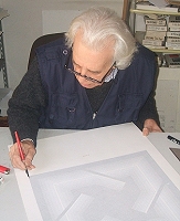 La Rosa all'operaL'indecifrabilità – Un lavoro costante quello dell'artista nativo di Caccamo, che richiede calma, concentrazione, precisione e rigore. Un piccolo errore significa buttare via tutto: tempo, fatica, la tela su cui sta lavorando. "Ma questa è la cosa che mi da soddisfazione. In particolare nell'avvicinarmi al mistero, lavorare intorno ad una forma di cui oggi non conosciamo più il significato, ma che un tempo doveva averlo avuto, come nei segni rupestri. La bellezza della forma e la sua indecifrabilità".