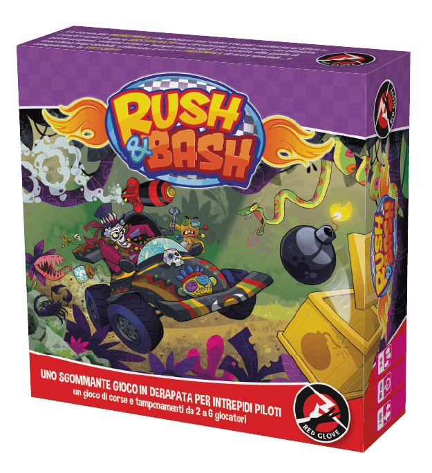 – Rush & Bash – di Erik Burigo e Guido Favaro – Edizioni Red Glove. Una corsa mozzafiato su auto improbabili, lungo percorsi impossibili, da disseminare di ostacoli per spazzare via gli avversari! Consigliato dai 7 anni.