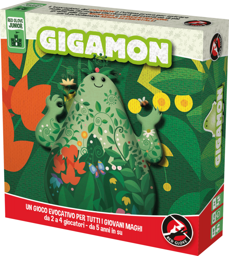 – Gigamon – di Karim Aouidad, Johann Roussel e Guido Favaro – Edizioni Red Glove. Un gioco di memoria che permetterà di evocare gli spiritelli elementali per fonderli e creare i grandi Gigamon! Consigliato dai 3 anni.