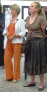 Il pubblico all'inaugurazioneDue stili, un'arte– Lo spazio è ampio, ma le opere in mostra lo riempiono degnamente. Due artiste che si confrontano con le loro creazioni, apparentemente molto distanti tra loro. Helen Mitchell sperimentatrice di pittura polimaterica, tele ricche di colore vivaci. Un'artista che non inizia mai un'opera sapendo cosa voler rappresentare, ma che dà libero sfogo al colore e alla manualità. Quest'ultima è ben visibile in alcuni esempi di disegni esposti dell'artista, che con il classico bianco e nero, dà vita a corpi femminili, proprio a richiamare il titolo della mostra "Il gesto sinuoso". L'idea di fare una mostra con Sigrid Bicca è venuta proprio alla pittrice, che conosceva e apprezzava l'arte della ceramista. "Ero un pò spaventata all'idea di dover accostare le nostre opere così differenti", spiega Helen, "ma ora che vedo la mostra alllestita, mi piace molto. Sono due fare artistici differenti, ma che si compensano bene. In realtà ci sono anche delle forme che si avvicinano molto; questo è davvero interessante". Sigrid Bicca ha presentato invece soprattutto delle creazioni in ceramica raku. Amante dell'arte e attiva in mostre prevalentemente in territorio svizzero, ha conosciuto la realtà dell'atelier da qualche anno e fa parte dei soci di esso.