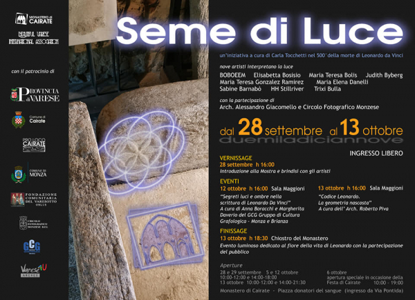 La collettiva “Seme di Luce” inonderà d’arte e luce le sale dell’antico Monastero di Cairate ancora fino al 13 ottobre 2019.
