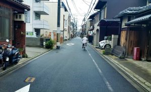 La signora che ci farà da guida arriva in bicicletta, tutta trafelata e inzuppata di pioggia, con l’impermeabile e la borsa nel cestino, quasi fosse una Jessica Fletcher nipponica. Avrà più di settant’anni ma è vispa e simpatica. Sarà lei a condurci alla scoperta di una delle abitazioni più sensazionali che io abbia mai visto: la casa Nijo-Jinya.