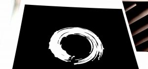Sul pannello dalla quale è comparsa la signora è dipinto un enorme Enso: un cerchio vuoto tracciato con un sol colpo di pennello. Nero su fondo bianco. E’ il simbolo supremo dell’illuminazione zen.