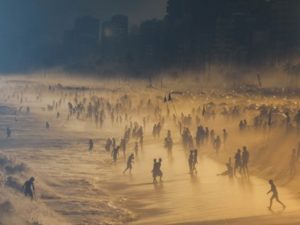 I corpi in movimento tra le onde esprimono una “joie de vivre” quale sintonia di un popolo che vede nell’ ambiente la sua naturale scenografia esistenziale densa di Saudade dove nostalgia e malinconia si fondono con armonie musicali dai ritmi tropicali atte ad annunciare le passioni e gli amori della vita.