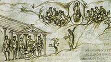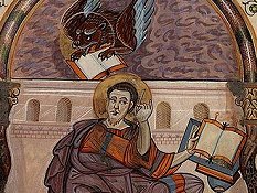 comprese le immagini degli evangelisti, seduti di fronte ad un leggìo intenti a scrivere. Le posture e gli atteggiamenti degli Evangelisti, nonché la presenza della Fonte della Vita, tema iconografico introdotto per la prima volta nell'arte occidentale e più volte ripreso in seguito, rimandano ad un repertorio mediorientale.