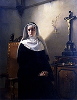 G.Molteni, La Signora di Monzadel processo, eccezionalmente esposti. Tra arte e storia la mostra propone alcuni tra i più bei ritratti dell'epoca, scene ricche di pathos, come la grande tela di Francesco Hayez raffigurante Valenza Gradenigo davanti agli Inquisitori realizzata nel 1835, ma anche rappresentazioni dolci e malinconiche come l'olio su tela di Stefano Ussi dedicato a Pia de'Tolomei; e ancora scene di raccoglimento come quella rappresentata da Giuseppe Molteni con la sua Signora di Monza datata 1847, un olio su tela conservato ai Musei Civici di Pavia.