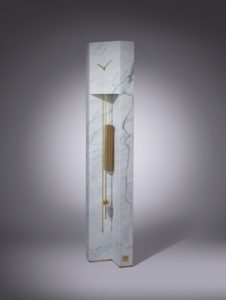 Arriviamo per tanto al designer britannico Lee Broom che ha festeggiato il decimo anniversario del suo studio con un orologio a pendolo in edizione limitata, ricavato da un blocco monolitico in marmo di Carrara.