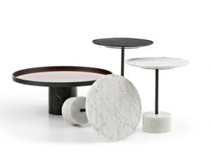 Piero Lissoni crea una serie di tavoli e tavolini differenziati da forme cilindriche e modulari impreziositi dalla qualità dei materiali utilizzati, quali legno massello di frassino, quattro tipologie di marmo e varianti di piani in vetro di differenti colorazioni.