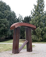 I. Legnaghi, PortaUn simbolo forte – La Porta di Igino Legnaghi si è chiusa. L'affascinante ed evocativa scultura in ferro che accoglieva i visitatori arrivati da via Monguelfo lungo la strada nel parco che porta alla sede del Museo d'arte moderna e contemporanea, al Castello di Masnago, è stata trasferita altrove per volontà del collezionista che la prestò alcuni anni. Era lì, a suo modo, un simbolo di una certa vocazione del museo ad aprirsi alla scultura più attuale, un invito inatteso, una presenza contemporanea altera, stagliata contro il bianco dell'edificio.