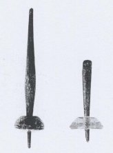 Frammenti di bacchette in legno e sottili fogli di cuoio lascerebbero supporre la presenza di una scatola in legno dove erano conservati questi oggetti.