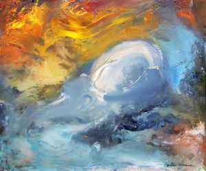 rincorrono in vortici dove il colore scandisce l’emozione. Nei gialli la luce, nei verdi l’agognata quiete, nelle tinte scure i periodi più bui . “Nel sonno della ragione”, come recita il titolo della mostra, la razionalità cede il passo al sogno e alla fantasia dell’artista mentre si liberano, quasi inconsapevoli, sfoghi e paure che il gesto trasforma in onirici scenari.