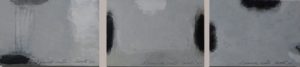 Le tonalità grigie dipanate sulla superficie piana paiono scandire passaggi temporali dove la Realtà è data dalla fisionomia degli oggetti coscientemente acquisiti da ognuno di noi mentre l’Utopia dalla dilatazione degli spazi quali luoghi dell’interiorità come il respiro profondo dei ricordi, il misurato palpitare della speranza, l’attimo per sempre fermato dalla sintesi del segno.