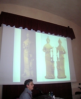 Un altro momento della conferenzaIl santuario di Minerva – Un ritrovamento del tutto casuale, dovuto alla scoperta di un centinaio di statue in terracotta scoperte in un affossamento del terreno, qui scaricate come fossero immondizia, trecento anni dopo la loro realizzazione. Dal rinvenimento delle terrecotte a quello dei tredici altari dedicati a Minerva e del santuario di Enea il passo è stato breve. La scoperta è stata indubbiamente sensazionale: se gli altari sono testimonianza della religiosità latina (sono molto simili a quelli etruschi), le statue, ricomposte dai singoli frammenti, sono espressione, oltre che del culto, dell'arte e della rudezza del popolo italico prima della netta influenza ellenistica e romano imperiale.