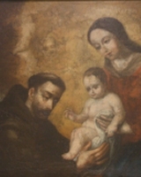Particolare dell'opera restaurataprestano da esporre". All'interno della galleria mi attrae particolarmente una tela dall'aspetto un pò rovinato, ma che sottende una bellezza antica. Un quadro che ha in realtà una storia particolare. "Quest'opera nell'800, o anche prima, meritava più d'esser buttata che conservata -ci spiega Sangalli- era stata trasformata in una Sacra Famiglia con Maria che porgeva il Bambino ad un San Giuseppe fortemente manipolato e così brutto. Aveva un'aureola davvero brutta di quelle che venivano messe a quel tempo, che sembravano d'oro anche se non lo erano". Fortunatamente a ripristinare l'antico splendore di quest'opera settecentesca è intervenuto dieci anni fa un'intervento di restauro. Conclude Sangalli "dopo il restauro il San Giuseppe è ritornato ad essere uno splendido san Francesco. Il quadro raffigura quindi una delle scene sacre più belle, quando la Vergine porge il bimbo tra le mani del santo. L'inizio del presepe, del Natale".