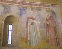 All'interno proseguono le sorprese: sulla parete destra si trovano una bellissima Trinità, la Vergine che allatta, San Lorenzo con la graticola e i Santi Cosma e Damiano, raffigurati con ricchi abiti aristocratici, il lungo mantello di ermellino e "i ferri del mestiere".