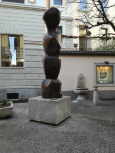 L’opera di via Albuzzi fu collocata nel 1997 in occasione della grande mostra antologica dedicata all’artista al Castello di Masnago. Si tratta di una fusione in bronzo patinata eseguita in quell’anno dalla Fonderia Cubro di Novate Milanese individuata dalla Famiglia Tavernari e dallo scultore Paolo Borghi, noto artista di Malnate, tratta dal calco del Totem ligneo ancora attualmente esposto nel cortile interno ai Musei Civici del Castello di Masnago.