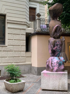 protettivo dell’opera costituito da un mix di cere nobili. Per quanto invece riguarda la zona lapidea che costituisce il basamento della scultura, l’asportazione del graffito è stato eseguito con un leggero intervento meccanico tramite spazzoline per togliere la vernice superficiale a “secco”, poi con un’alternanza di solventi estrapolatori per asportare il più possibile il colore assorbito. A salvaguardia del basamento è stato applicato uno strato di antigraffito.