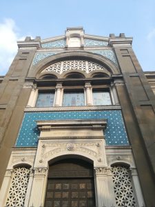 Non esistendo una tradizione ebraica cui fare riferimento per il progetto, l’architetto seguì il filone eclettico, caratterizzando l’edificio con elementi bizantini e arabeggianti. Lo testimonia l’unico elemento originale tuttora esistente: la facciata monumentale, impreziosita da mosaici azzurro e oro, leggermente rientrata e separata dalla strada da una lunga cancellata.