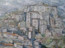 Un'opera di Paola Carabelli ispirati agli elementi e alle vedute naturali: paesaggi, borghi antichi arroccati sulle rocce, vedute.