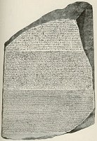 La spuntarono gli Inglesi che dal 1802 la conservano al British Museum a Londra. Ma Napoleone, e gli scienziati al seguito della spedizione, ne fecero alcuni calchi. E nella guerra della comprensione del reperto, i cugini d'oltralpe furono più veloci degli isolani. Jean François Champollion, successivamente nominato direttore della sezione egizia del Louvre, fu il primo nel 1822 a decifrare il contenuto, comparando il decreto del Faraone Tolomeo, in tre lingue: greco, egiziano demotico, e geroglifico.