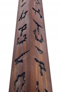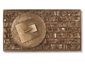 bronzo. Le quattro facce dell’opera presentano una serie simboli che rimandano ai geroglifici egizi e al segno informale che conferiscono solennità all’opera.