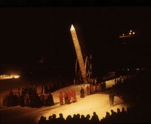 Oltre alle opere esposte al Castello Campori sarà inoltre possibile ammirare, in piazza Lusuardi (dove rimarrà per tre anni), l’imponente “Obelisco per Cleopatra” opera di 14 metri, progettata dallo scultore nel 1989 per la messa in scena dell’opera lirica “La passione di Cleopatra” a Gibellina, in Sicilia, sui ruderi degli edifici colpiti dal sisma, e realizzata poi nel 2008 in acciaio corten e