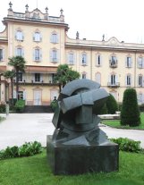 Giò Pomodoro a Villa Recalcatiprimi anni, Coesistenza III, 1958, Grande Ghibellina, 1965, Colloquio col figlio, 1975, e Sole Deposto, 1982. Ma dai giardini settecenteschi, il rimando passa subito fuori dai confini comunali, richiamando le due straordinarie sculture che l'autore di origine marchigiana ha lasciato in suolo prealpino: la "Spirale" per l'aeroporto di Malpensa e "Il Luogo dei quattro punti cardinali" nel parco pubblico di Taino.
