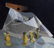 Questa è poi la suggestione del critico d'arte Luciana Rogozinski: «È un'operazione singolare che accetta volontariamente il rischio di essere equivocata come figurazione, per quanto colta, tradizionale, ma il forte e costante orientamento sul Significato ne fa un'operazione allegorica, una scena concettuale che coinvolge lo spazio, le architetture afunzionali, le pedine impersonali delle singole sequenze (le mele) e quanto di contemporaneo possa integrarvisi (i giornali come parti della sintassi ambientale).