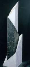 In questo senso, è illuminante il testo di Margit Rowell "qu'est-ce que la sculpture moderne?" di cui riportiamo solo un breve stralcio: "I materiali presi in considerazione sono la pietra arenaria (di Vicenza) forte, ma nel contempo calda; il ferro, imbullonato come strutture ingegneristiche, facendoci notare la sua fredda rigidità e impassibilità, o corroso, quindi disegnato e lavorato come una materia morbida e plasmabile; la carta, così apparentemente fragile, diventa spesso struttura portante e parte integrante dell'opera. Ferro e carta accolgono inoltre i procedimenti delle tecniche incisorie calcografiche, portando con sé la voglia di confrontarsi con metodi, prodotti e misteri antichi e tradizionali. Componente fondamentale di queste opere è il viaggio; la conoscenza di nuovi contesti urbani, culturali, sociali, formali, spaziali, ecc… Il viaggio diventa metafora di esperienza e di riflesso, di crescita individuale. Gli spazi architettonici esplorati durante i viaggi, diventano contenitori di ispirazioni. Attraverso visioni e scorci prospettici di luoghi di suggestivo interesse, le sculture diventano "libri narranti". (…) Gli elementi, con i rispettivi concetti simbolici che si ritrovano maggiormente in questi lavori, sono: il Ponte, come elemento di comunicazione sia geografico che spirituale, la Scrittura, come simbolo concreto della comunicazione umana, ed elemento di comunicazione nel tempo, come testimonianza e portatrice di memoria, la Cupola, come elemento tangibile, costruito dall'uomo, per metterlo in comunicazione dalla terra al cielo, quindi con altri luoghi dell'oltre".