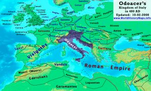 Gli ultimi imperatori d’occidente altro non sono che semplici fantocci, con la lama puntata alla gola da parte di generali spietati e senza scrupoli, quasi tutti di origine germanica. La differenza tra Odoacre, magister militum appartenente, pare, alla potente tribù degli Eruli, e i suoi predecessori è solo quella di rinunciare a nominare pure lui un burattino, che esegua le sue volontà alla lettera, accontentandosi invece di richiedere la carica di patrizio all’allora imperatore d’oriente, Zenone.