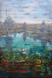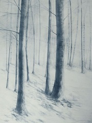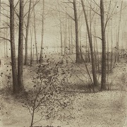 E' da quando ha iniziato a dipingere che Jernej Forbici ci fa partecipi – con la sua pittura potente, pastosa, intrisa di echi antichi – delle devastazioni perpetrate in Slovenia dalle fabbriche di alluminio, eppure ciò che domina su quelle tele grandi, ipnotiche, è un senso di grazia, di pace regalata, che si concretizza negli sfondi dalla suggestione rinascimentale. E il dialogo diventa un canto malinconico nei delicati lavori a grafite su legno di Marika Vicari: distese di alberi spogli che si allungano all'infinito, prati dormienti sotto la coltre leggera della neve, rami vibranti nella brezza profumata di muschio.