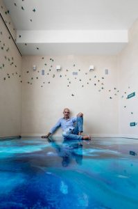 In un appartamento privato ho poi coniugato questi due percorsi dipingendo un pavimento di 30 metri quadri da cui parte verso la parte e il soffitto per tutta la stanza un volo di farfalle».