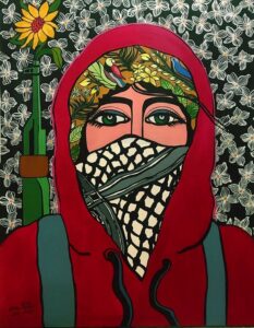 Il percorso espositivo si apre con i lavori di Al-Hawajri e Mattar, che restituiscono un’immagine di Gaza lontana dalla sola narrazione della distruzione, raccontandone la quotidianità, gli affetti e la memoria collettiva. Prosegue con le installazioni di Haig Aivazian, dedicate ai meccanismi di controllo e sorveglianza nelle società contemporanee, e si conclude con alcune delle opere più emblematiche di Emily Jacir, tra cui Material for a Film e il grande memoriale tessile dedicato ai villaggi palestinesi distrutti nel 1948.