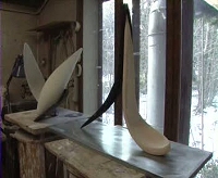 Volere volare – "Sto continuando la mia ricerca che vuole fare incontrare materiali diversi" racconta Laura Branca, "in queste ultime sculture sono ritornata a lavorare il marmo e il granito, ad abbinarlo a materiali quali l'acciaio o il ferro, che fanno da supporto ma che diventano anche parte integrante dell'opera, cerco di rendere questo materiale pesante volatile, per portarlo in alto, dargli questo significato". La scultura della Branca insiste su un finissimo rapporto di contatti e di sensazioni tattili, ma si sposta anche in una direzione elegantemente estetica, giocata sul colore. Le opere, infine, ambiscono all'esperienza: si costruiscono girandoci intorno, fino a trovare il giusto punto di vista che faccia collimare l'apparenza materiale con la metafisica delle idee, che imponga una coscienza sensoriale dell'opera a chi aspetta, con pazienza, una rivelazione.