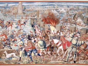 Gli arazzi sono riuniti nella città che li ha ispirati, dopo un importante intervento di restauro e tre grandi mostre negli Stati Uniti, per restituire al pubblico la narrazione visiva completa della battaglia, immortalata con una sensibilità pittorica e simbolica di sorprendente modernità.
