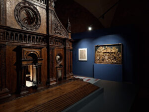 Il pubblico potrà infine ammirare lo straordinario coro ligneo cinquecentesco intarsiato e dipinto, proveniente dalla chiesa di San Marino di Pavia, appositamente restaurato e allestito nei Musei Civici.