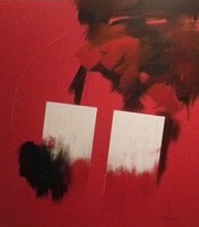 A tal punto emerge dalla profondità dei colori la geometrica regolarità di due lastre bianche, forse monoliti, possibile rimando a 2001 odissea nello spazio, che tutto il sapere contengono e dove tutto è ancora da scrivere.